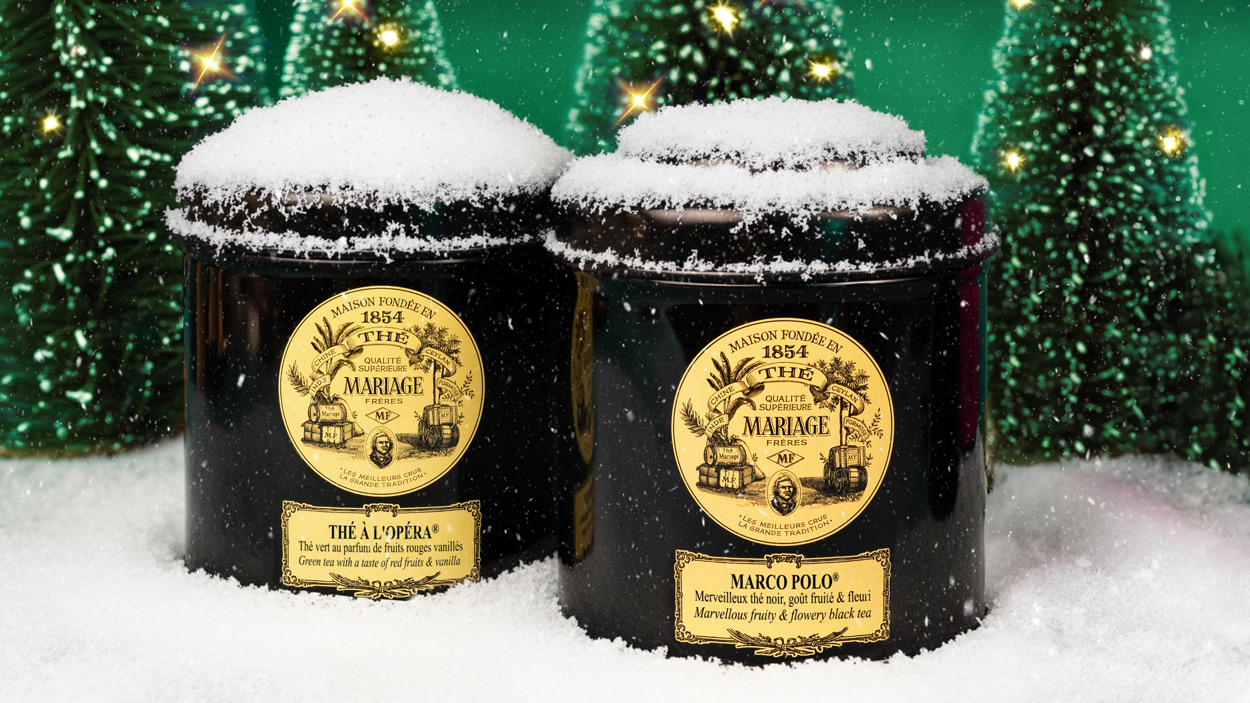 Discover the Mythical Teas in 'Icône" black Canisters and Cotton Muslin tea sachets, collector jars, tea delights and enchanting accessories, little treasures to slip beneath the Christmas tree.