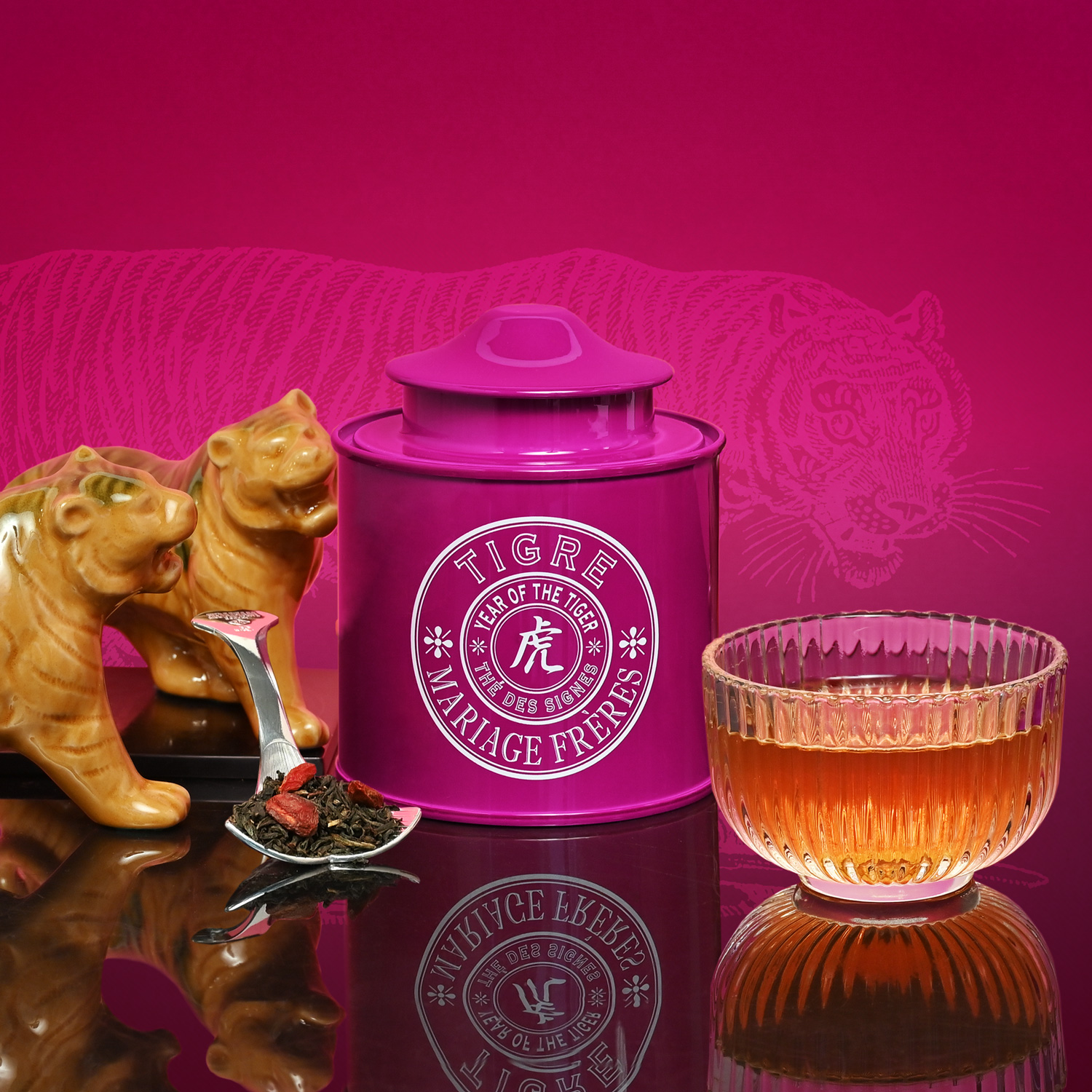 Il Thé des Signes® per l'Anno della Tigre è un tè nero punteggiato da gemme dorate, arricchito da incantevoli note di balsamo di cedro e aghi di pino, con accenti ammalianti di bergamotto solare. Un tè perfetto per abbracciare questo anno con maestosità.